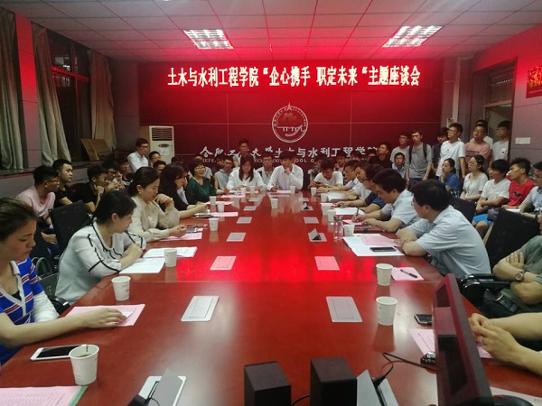 5月15日,污污漫画 2018年重点用人单位座谈会在屯溪路校区纬地楼414会议室举行。来自中建、中铁、中交、中冶、海信日立等全国各地20余家重点用人单位代表,学院相关负责人、辅导员、2019届毕业生代表等参加座谈会。