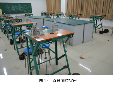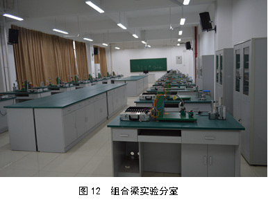 5)组合试验架实验分室(综合二号实验楼211室):主要设备包括材料力学组合试验架和20点静态应变仪18套。