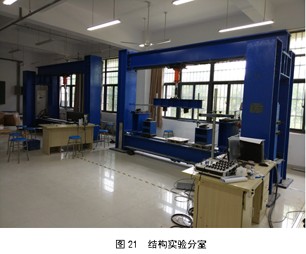 4)结构实验分室(综合二号实验楼102室):实验室建筑面积136.1m2。主要设备包括:组合式结构工程实验装置2套,动态信号测试系统1套,手持式动态信号测试分析仪2套,非金属超声检测仪、混凝土电子裂缝宽度检测仪、砂浆回弹仪、粘土砖回弹仪、激光测距仪各4台,钢筋定位扫描仪、金属测厚仪、数显混凝土回弹仪、砂浆贯入仪各2台,混凝土回弹仪10台,各量程位移计100只。