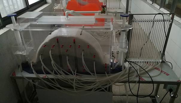 实验室主要实验仪器设备有:流体静力学实验仪、不可压缩流体恒定流能量方程实验仪、不可压缩流体恒定总流动量方程实验仪、毕托管测流速实验仪、雷诺实验仪、文丘里流量计实验仪、沿程阻力水头损失实验仪、局部阻力损失实验仪、孔口与管嘴出流实验仪、流体力学(水力学)多功能综合实验仪、静动态应变实验台、土石坝闸基流网水电比拟实验台、堰流实验装置、消能工实验装置、水泵结构及抽水装置实验仪、离心泵基本性能实验仪、离心泵串并联综合性能实验仪、离心泵汽蚀性能实验仪、离心泵综合性能实验仪、水轮发电机组结构及水电站枢纽布置认识、管道水击现象认识实验仪、水击调压室综合实验台、土壤入渗仪、自动水位跟踪仪、旋浆式流速计、涡街流量计、流速雷达测速仪、声学水位计、回声测深计、土壤摘情与旱情监测系统、土壤水分温度监测系统、手持式导航仪、水利工程施工沙盘模型、水利枢纽动态仿真模型、全自动数字式回弹仪、水工结构内部探测雷达、智能测沙颗分仪、电磁流量计、试验水槽、双变坡水槽、全自动人工模拟降雨器、抽水试验过程演示装置、有压管流动分析实验台等仪器设备,实验室还拥有各类水泵、水工水力模型试验的流量控制系统、尾水位控制系统及浪高仪、声学多普勒流速仪(ADV)、自动跟踪水位仪、智能流速仪、压力传感器等高精度的量测仪器设备,拥有便携式水质自动采样仪、COD多功能水质分析仪、水质多参数监测仪、光学蓝绿藻传感器、光学溶解氧传感器、光学浊度传感器、PH/ORP传感器、光学叶绿素传感器、手持式数据采集处理终端、土壤摘情与旱情监测系统、土壤水分温度监测系统、旋浆式流速计、流速雷达测速仪、声学水位计等量测仪器设备,可满足水利水电工程、水文水资源工程、给排水科学与工程、土木工程、建筑环境与能源应用工程、工程力学、环境工程等相关专业本科与研究生实验教学、大学生创新创业实验和科研使用。