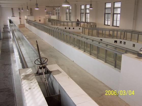 水力学实验室是在原水力学、水工模型和水利机电三个实验室的基础上建立起来的综合性实验室。历经60年的发展历程,已从单一的《基础水力学》课程本科教学实验发展到能满足水利水电工程、给排水科学与工程、水文与水资源工程等相关专业课程的本科、研究生教学实验任务及水利工程、市政工程学科的科学试验研究任务,2012年获批校级水利工程本科教学示范中心。