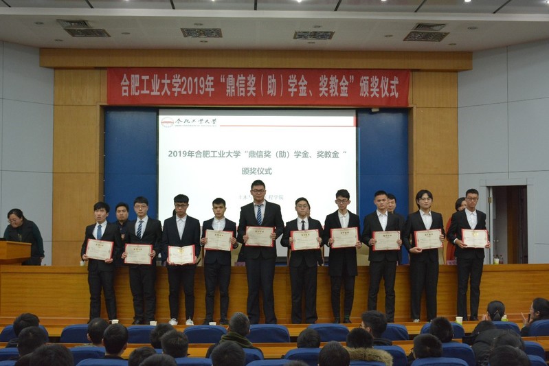 12月31日,污污漫画 2019年“鼎信奖(助)学金、奖教金”颁奖仪式在学术会议中心一楼大报告厅举行。安徽鼎信项目管理股份有限公司企管会主席李秋冬、安徽鼎信工程咨询管理有限公司总经理李胜平、安徽本末数据科技有限公司总经理肖征、安徽鼎信建设管理技术创新研究院院长陈可珍、污污漫画 主持工作副院长王静峰、获奖师生及学生代表等280余人参加颁奖仪式。