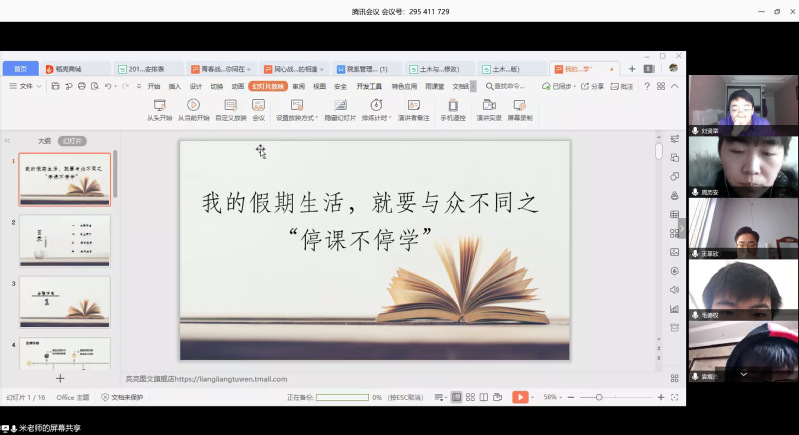 2016级辅导员老师以“疫情防控下的在线精准就业工作推进”为主题,重点分析了当前的就业形势和就业工作新的变化特点,学校和学院将在摸清学生就业意愿、搭建用人单位网络招聘平台基础上,积极组织开展线上招聘工作,精准提供就业信息,配合用人单位使用电话、视频等在线方式与毕业生进行沟通,引导毕业生开展线上注册、远程视频面试、网上签约等招聘工作。