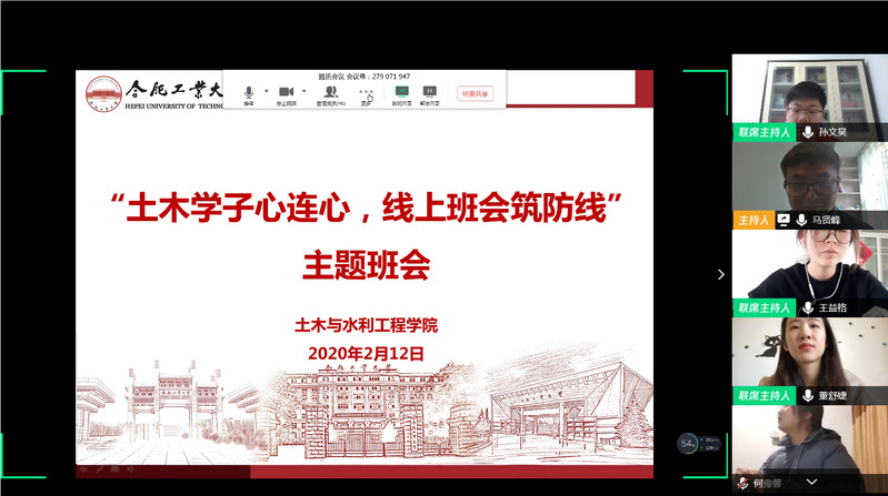 本次疫情防控线上主题班会充分利用网络新媒体技术,跨越空间障碍,发挥线上实时互动的优势,不仅加强了广大土木学子的自我教育、自我管理和自我服务,让他们对疫情防控期间的纪律要求、线上教学工作安排、第二课堂活动组织等有了更加深刻的了解和认识,也展现了土木学子为抗击疫情贡献力量的信心和担当。我们坚信,万众一心、众志成城,与祖国一起,与人民一道,一定能战胜疫情,打赢这场疫情防控阻击战。