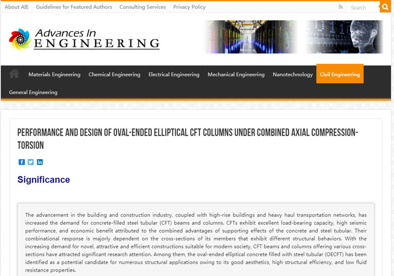 Advances in EngineeringAIE)报道原文链接://advanceseng.com/performance-design-oval-ended-elliptical-cft-columns-combined-axial-compression-torsion/