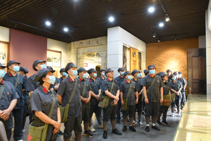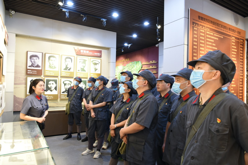 接着,全体学员参观了鄂豫皖苏区革命烈士陵园烈士纪念堂、鄂豫皖苏区首府革命博物馆。大家在一张张老照片、一件件珍贵文物前驻足,它们全面展示了大别山革命根据地形成、发展和壮大的过程,再现了大别山人民在中国共产党的领导下进行艰苦卓绝、波澜壮阔的革命斗争历程和大别山红旗不倒的革命气概,大家再一次重温战争年代革命先辈的抛头颅、洒热血的英勇气概和革命精神。