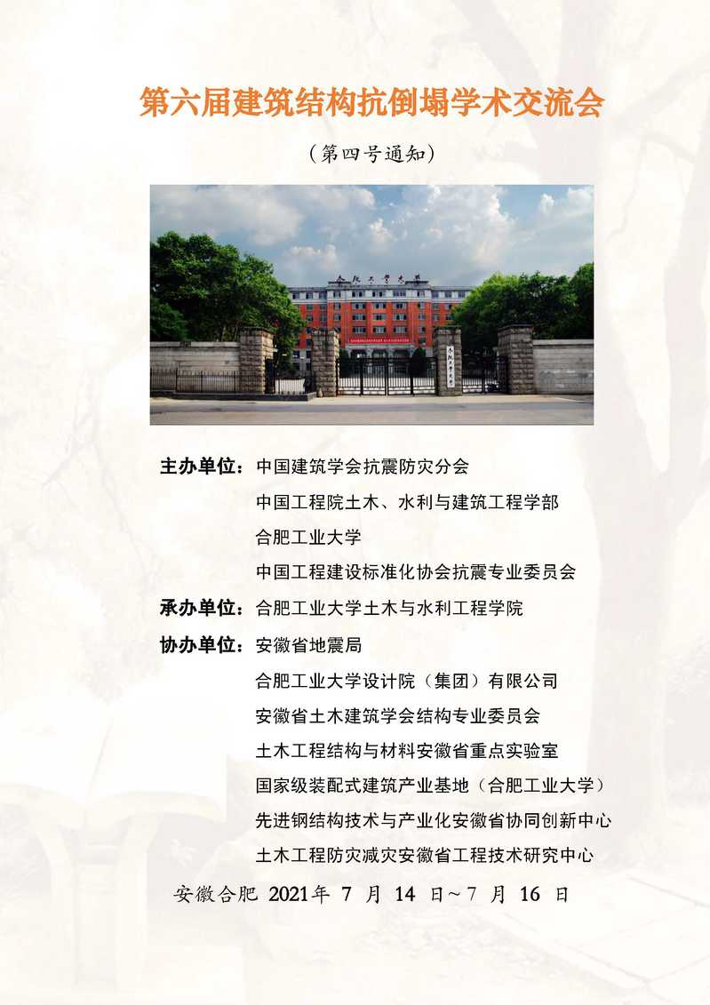 第六届建筑结构抗倒塌学术交流会(4号通知)