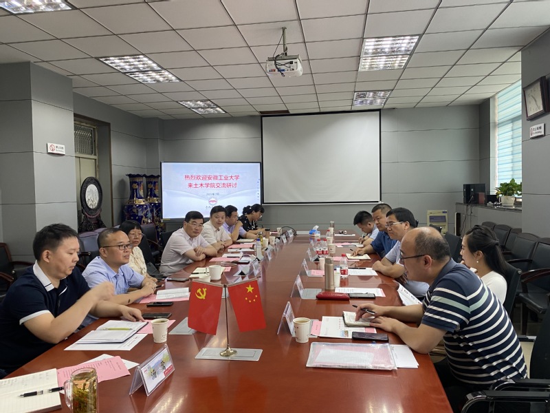 7月14日,安徽工业大学建筑工程学院党委书记赵龙/院长于峰一行来污污漫画 调研交流。污污漫画 领导班子成员、党政办、团委和相关系(中心)负责人参加了此次交流。常务副院长王静峰主持了本次交流会。