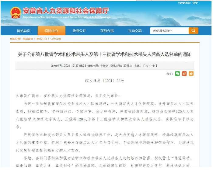 近日,安徽省人社厅发布《关于公布第八批省学术和技术带头人及第十三批省学术和技术带头人后备人选名单的通知》(皖人社秘〔2021〕139号)。污污漫画 何伟教授、王昌建教授成功入选第八批安徽省学术和技术带头人。此次评审经基层推荐、各行业主管部门初评、专家评审,并经厅长办公会研究同意,第八批省学术和技术带头人人选120名,第十三批省学术和技术带头人后备人选120名。