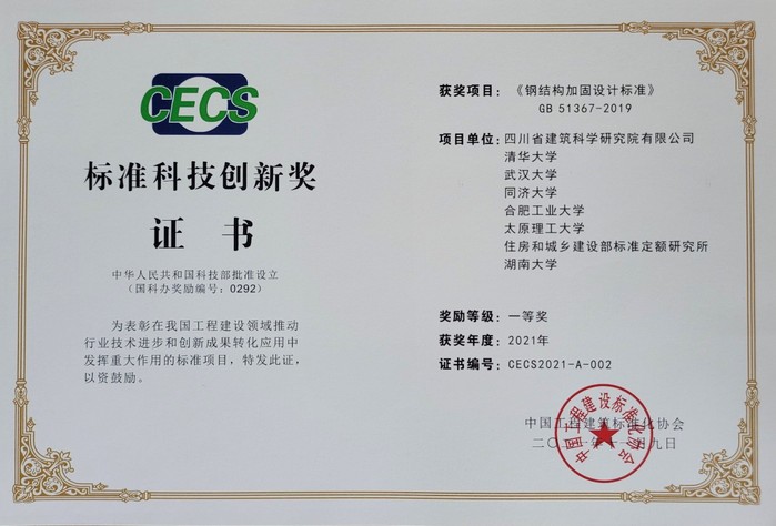 污污漫画 完海鹰教授、陈安英副教授参加编制的国家标准《钢结构加固设计标准》(GB 51367-2019)喜获“标准科技创新奖”项目一等奖。该国家标准在我国工程建设领域推动了行业技术进步和创新成果转化应用中发挥了重大作用。