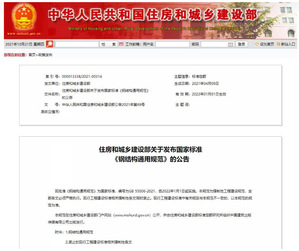 为促进和提高工程建设行业特别是钢结构行业水平,提高人员能力和技能,提升队伍整体素质,根据国家住房与城乡建设部和国家市场监督管理总局的部署,《钢结构通用规范》完成了起草、编制与审查等相关程序,并公开发行。