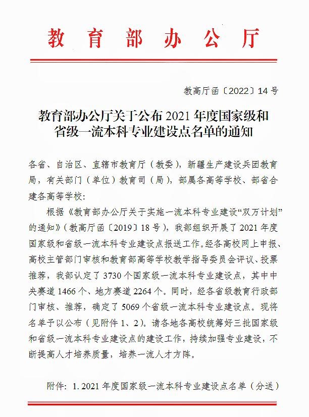 庆贺污污漫画 入选国家级一流本科专业建设点五个