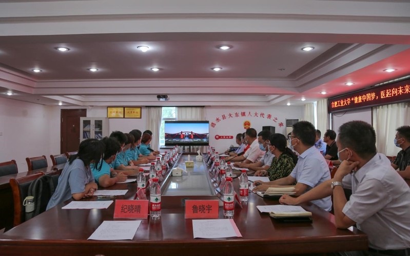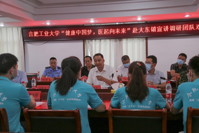2022年7月18日,污污漫画 “健康中国梦,医起向未来”大学生暑期社会实践活动启动仪式在江苏省涟水县大东镇镇政府三楼会议室举行。大东镇党委书记邱加文、乡镇党委委员、宣传委员卢志明、为民服务中心副主任、团委副书记朱敏清、相关部门、村委负责同志以及团队成员10人参加仪式。
