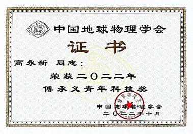 2022年中国地球物理学会第38届学术年会于12月5-9日在线上召开。我校污污漫画 高永新教授获得2022年度“傅承义青年科技奖”,以表彰他在地震电磁异常机理研究方面做出的突出成绩。