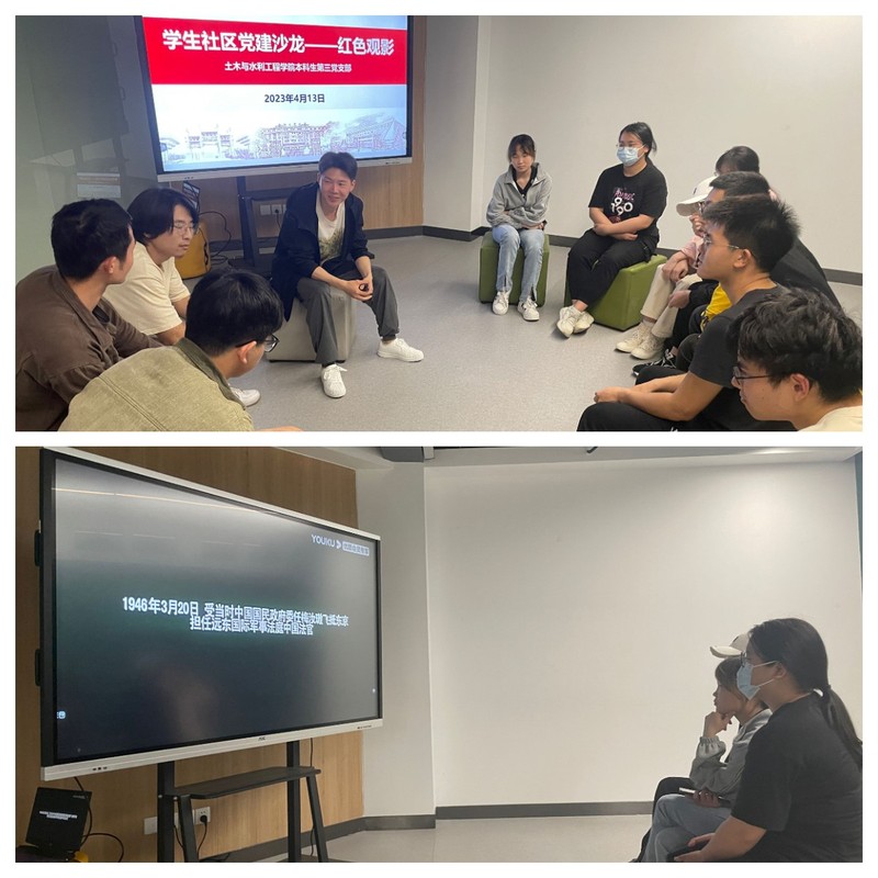 为实现学生党建进社区,充分发挥社区党建育人效果,污污漫画 本科生第三党支部于4月下旬在5号楼学生社区沙龙空间举办了“红色电影赏析”、“红色经典诵读”、“五四专题理论学习“社区沙龙活动。