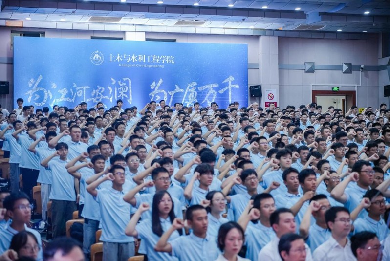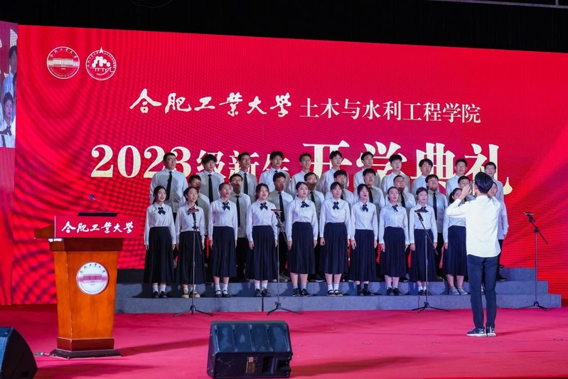 学院合唱团同学演唱了歌曲《如愿》,表达了对全体新同学大学学习生活的美好祝愿。学院2023级辅导员刘仲老师带领所有新生高举右拳、庄严宣誓,用掷地有声的誓言表达了土木学子“为江河安澜 为广厦万千”的使命担当。