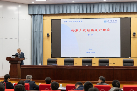 受聘仪式结束后,李杰院士作了题为“论第三代结构设计理论”的报告。报告从分析结构设计理论的两个基本维度入手,概略论述了第一代、第二代结构设计理论的逻辑发展过程。在此基础上,李杰院士指出了第二代结构设计理论的局限性与基本矛盾,分析了第三代结构设计理论应该具有的基本特征,论述了其理论基础和基本架构。最后,他对为完整建立第三代结构设计理论尚需展开的研究做出了主题描述。李杰院士和与会师生就报告内容和感兴趣的问题进行了深入、热烈的交流讨论。