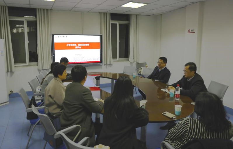 专题党课开始之前,汪萌校长在学术会议中心第六会议室与学院青年教师、无党派教师代表以及学院就业辅导老师进行了交流座谈,对学院青年教师的发展、学院教育教学和就业工作的开展提出指导性的意见和建议。