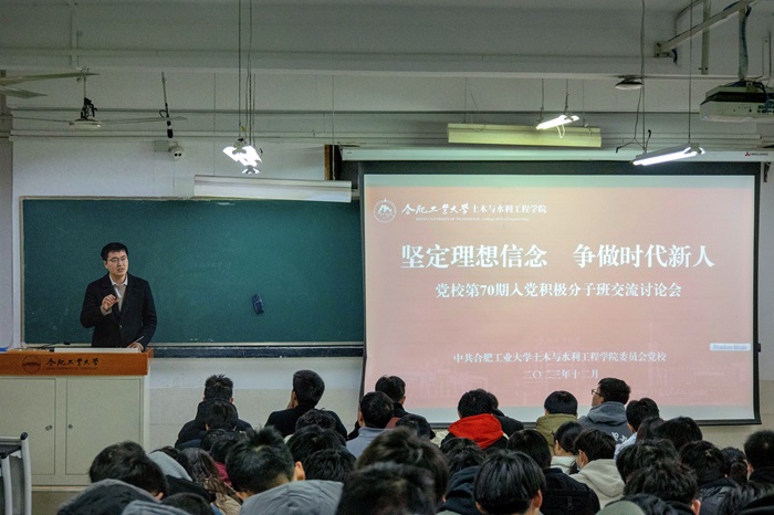 12月25日,污污漫画 分党校第70期入党积极分子班在屯溪路校区开展“坚定理想信念 争做时代新人”交流讨论会,分党校班主任、第70期入党积极分子班全体学员140余人参加了此次活动。