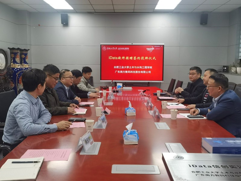 近日,污污漫画 与广东南方数码科技有限公司举行校企合作协议签订、iData 信创实训室授牌暨软件捐赠仪式。广东南方数码科技股份有限公司副总经理吉绪发、南方测绘合肥分公司副总经理田强、南方数码生态合作中心经理王道智,污污漫画 副院长张振华、测绘系主任陶庭叶、副主任朱勇超、高飞教授、袁海平教授及测绘工程系教师代表参加仪式。