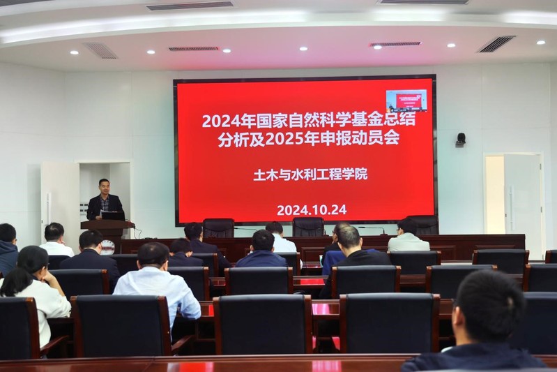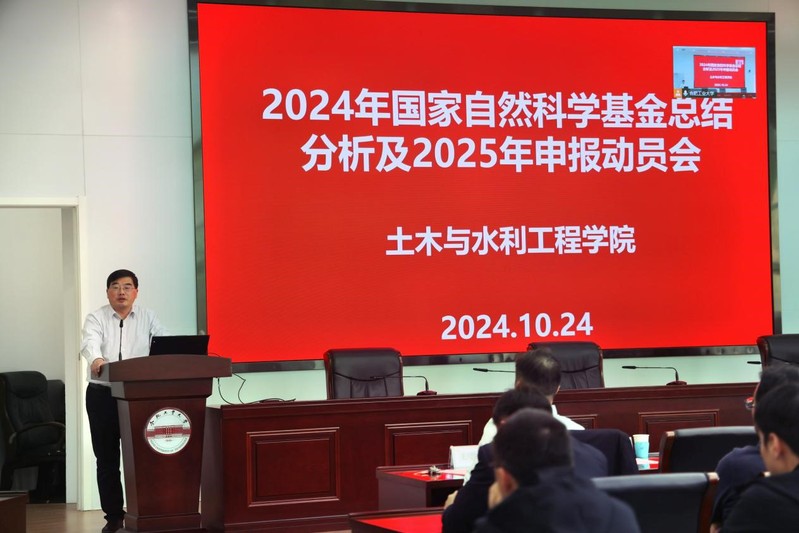 科研院科技成果与奖励处处长高永新传达了学校对2025年度国家自然科学基金申报的总体要求,通报了2024年度全国和学校的国家自然科学基金申报与获批情况。他要求学院保证申报数量,提高申报质量,持续推进重点类、联合基金和人才类项目的申报。