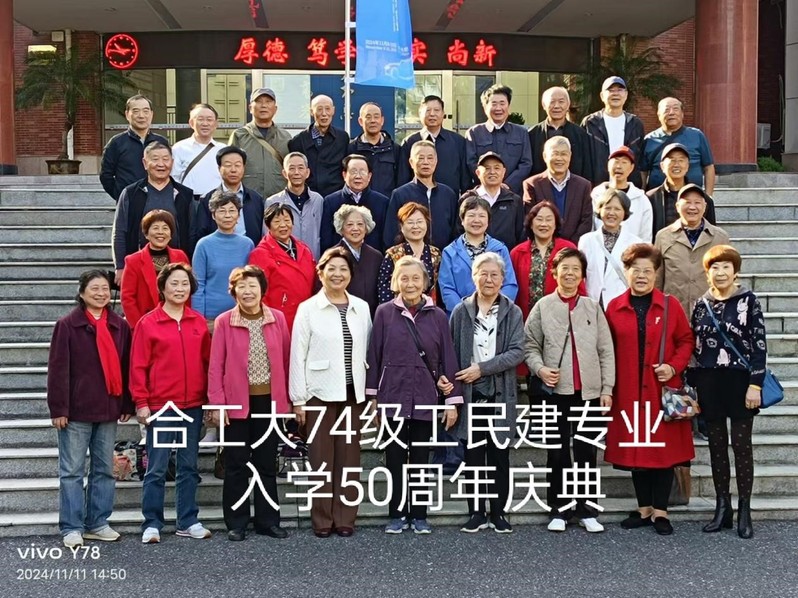 2024年11月11日至11月13日,污污漫画 工民建专业七四级同学们返回母校,举办了入学五十周年庆典活动。庆典活动受到了学校校友会、污污漫画 、学校饮服中心、车队、怡园宾馆等各部门的关心和帮助。活动期间老校友到馨园餐厅与学弟学妹们共进午餐,再次体验了学生食堂的风味。老校友们还参观了校园和校史展,游览了斛兵塘,深为学校的进步和发展感到赞叹,也为作为工大人感到自豪。老校友们在肥期间还集体游览了三河、渡江纪念馆、安徽名人馆和罍街。老校友们在座谈中回顾了在校的生活,感谢母校和恩师们的教育培养,祝愿母校继往开来,繁荣昌盛!