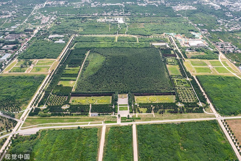 秦始皇陵位于陕西省西安市临潼区,其整体布局以陵墓为中心,呈现出一个中心、一条轴线、围绕中心的内、中、外三个不同层面的结构。