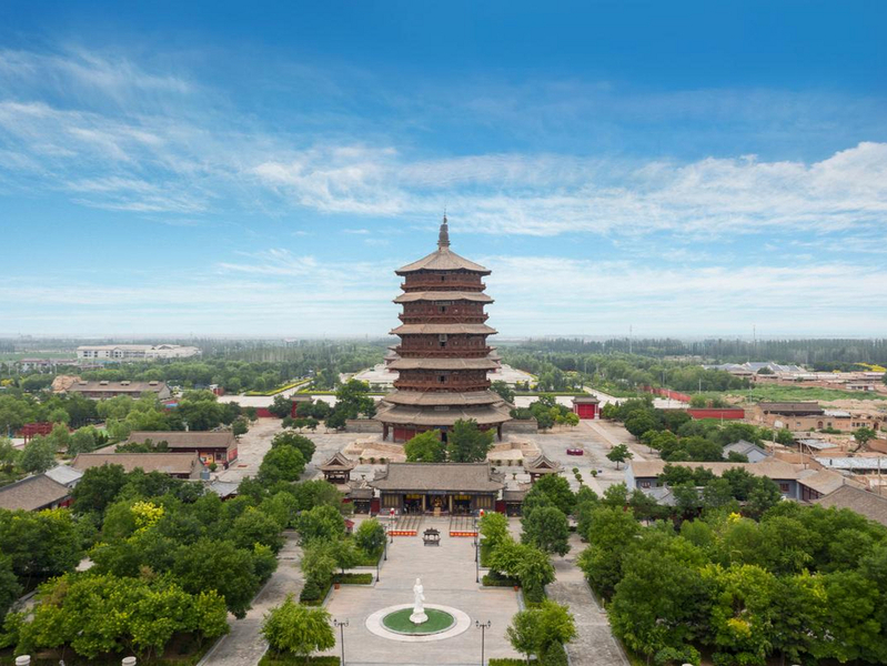 佛宫寺释迦塔(Pagoda of Fogong Temple),又称应县木塔,位于山西省朔州市应县佛宫寺内,始建于辽清宁二年(1056年),是世界上现存最高大、最古老纯木结构楼阁式建筑,与意大利比萨斜塔、巴黎埃菲尔铁塔并称“世界三大奇塔”。