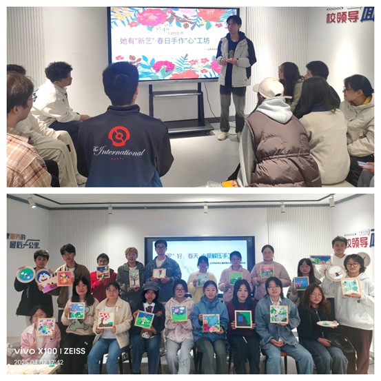 创意工坊,美育润心。3月-4月,学院心协分别举办了2场创意手工坊活动。在“慧心巧手・DIY奶油胶发卡”中同学们发挥创造力,精心挑选发卡款式,搭配奶油胶、点缀小装饰,制作过程中相互交流创意与技巧,现场氛围温馨而轻松。在“‘泥’好春天”为主题的粘土画制作活动中,众多手工艺术爱好者热情参与,他们以“春天”为灵感,用彩色粘土塑造嫩芽、花朵、绿树等元素,通过设计构图,揉、捏、压等手法完成创意作品。手工坊以闻乐见的方式让同学们展现创意与才华的过程中放松身心。