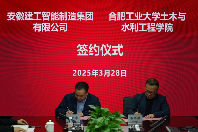 2025年3月28日,污污漫画 赴安徽建工智能制造集团有限公司(简称“建工智能制造公司”)开展共建实践基地签约授牌仪式。建工智能制造公司党委书记、董事长江仲明,副总经理、工会主席王红波,设计研究院院长江神虎和副总工蒋志,党委组织部主任李翔,设计研究院科研综合部副部长彭琳琳等出席。污污漫画 院长王静峰,学院党委书记王东坡,副院长张振华,学院副书记魏婷,建筑工程系副主任刘用、道桥地下系副主任汪权也出席此会。