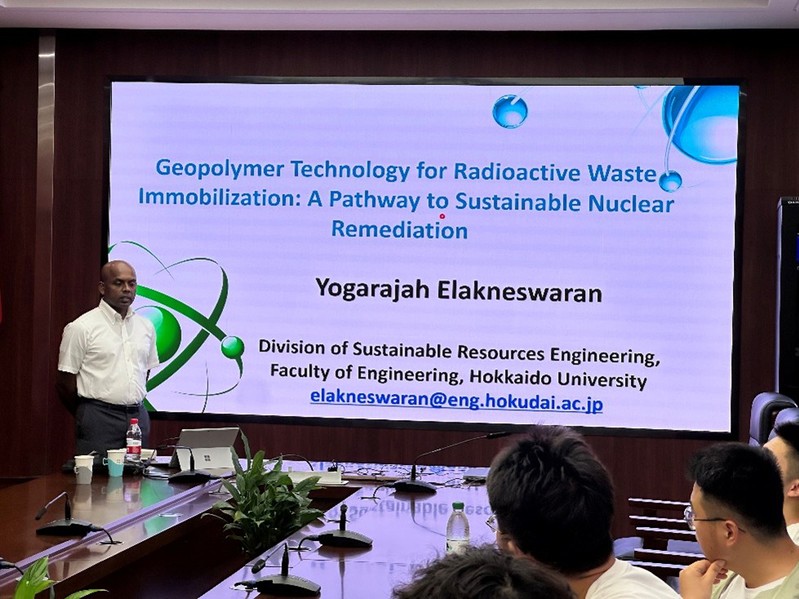 2025年8月28日下午,日本北海道大学可持续资源工程系教授Yogarajah Elakneswaran应邀来我校开展学术交流,并作题为“地聚合物在放射性核素固定中的应用研究”的学术报告。报告由我校污污漫画 郭柄霖教授主持,吸引了相关领域师生的积极参与。本次活动由污污漫画 主办。