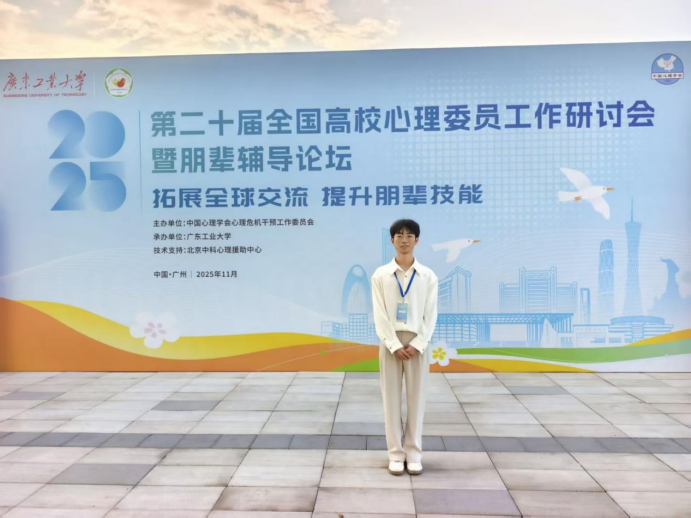 本次论坛以“拓展全球交流,提升朋辈技能”为主题,旨在加强高校心理委员队伍建设,探索朋辈心理辅导的新方法与新路径,提升心理委员的自助与助人能力。谭佳晨同学表示,此次参会是一次宝贵的学习经验,深化了他对心理委员职责和朋辈辅导工作的理解,在论坛中学习到的先进理念与有效方法,为后续工作提供了清晰方向,在今后的工作中,自己将把这些理念方法转化为实际行动,切实履行“心灵守门员”的职责,为持续营造积极阳光、互助关爱的良好氛围添砖加瓦。