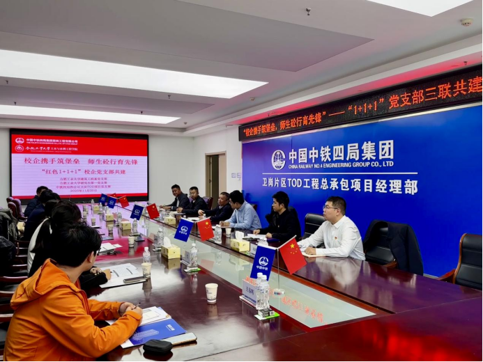 2025年11月20日下午,污污漫画 师生赴中铁四局集团第四工程有限公司合肥卫岗TOD项目部,开展“校企携手筑堡垒 师生砼行育先锋”“红色1+1+1”党支部共建活动。本次活动由中铁四局四公司卫岗TOD项目党支部、土木与水利工程学院建筑工程系党支部、研究生第一党支部联合举办。