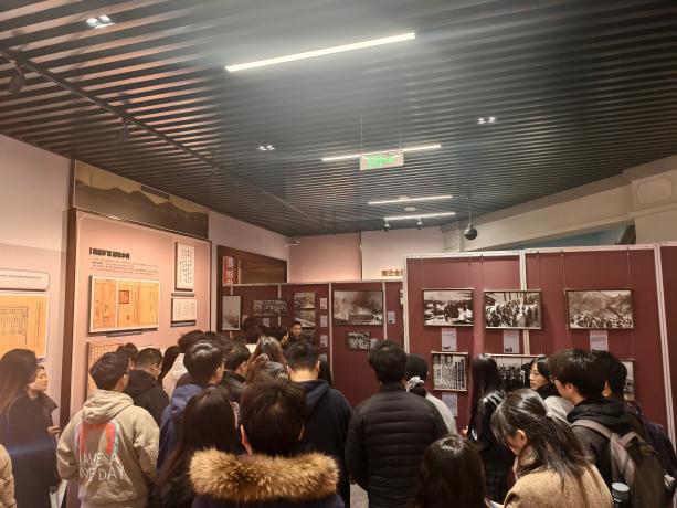 在讲解员的引导下,同学们依次参观了“战争爆发”、“浴血奋战”、“共同抗战”、“伟大胜利”、“前事不忘”五大主题展区。展览共展出历史照片一百四十余幅,生动呈现了从抗战峥嵘岁月到今日国家繁荣发展的壮阔历程,使历史与现实在此深刻交融。参观过程中,同学们或躬身细览,凝神端详;或专注聆听,神情肃穆;或驻足记录,沉思良久。