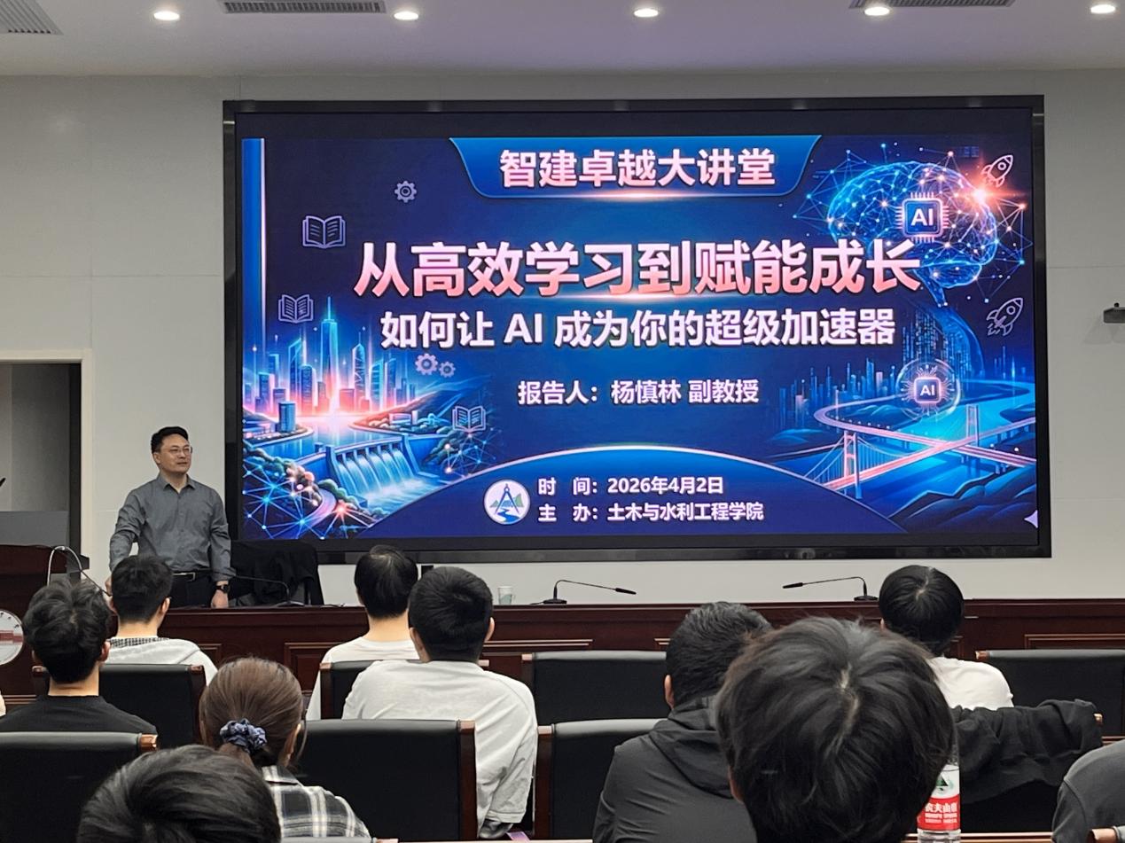 杨慎林以“从高效学习到赋能成长:如何让AI成为你的超级加速器”为题,结合自身经验与专业特点,讲解了AI在学习效率提升、专业能力强化中的应用方法,分享了数据处理、方案优化等实用技巧,并引导学生正确认识AI价值、规避误区,培养自主学习与创新思维。