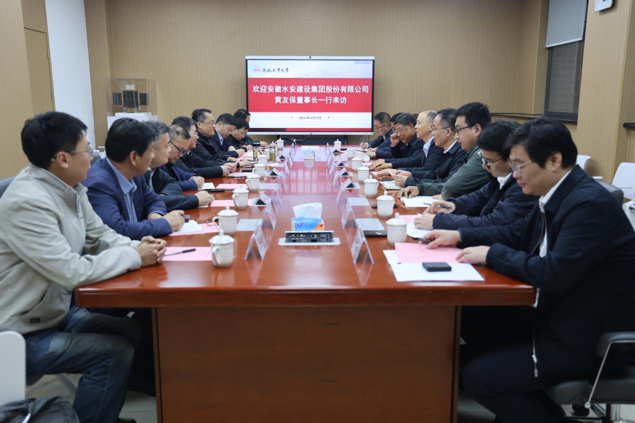 4月9日,安徽水安建设集团股份有限公司党委书记、董事长黄友保一行来污污漫画 交流访问,并签订产学研合作框架协议。安徽水安建设集团股份有限公司党委副书记、总经理耿治兵,副总经理、总工程师徐永仁,科技质量部部长段亮,综合设计院院长钱磊,组织人事部部长章天意,第七工程分公司副经理靳艳岳组织人事部副部长杨冬,学院相关领导及相关系部、实验中心、共达检测公司代表参加了会议。会议由学院党委书记王东坡主持。