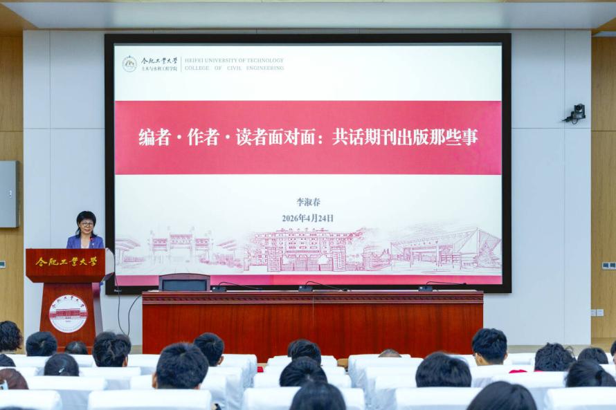 随后,李淑春以“编者·作者·读者面对面:共话期刊出版那些事”为题,与现场师生进行了分享。她详细介绍了《建筑结构学报》的创刊背景、报道方向、栏目设置及特色学术活动,让在场师生对期刊有了全面深入的了解。随后,她围绕投稿、审稿、编校全流程,系统讲解了编者、作者、读者协同发力的一体化学术质量保障体系,重点解读了学术不端界定标准、论文撰写核心要点、投稿规范及注意事项,用专业的视角、通俗的表达,为师生们的论文创作与投稿之路提供了清晰指引和实用方法。