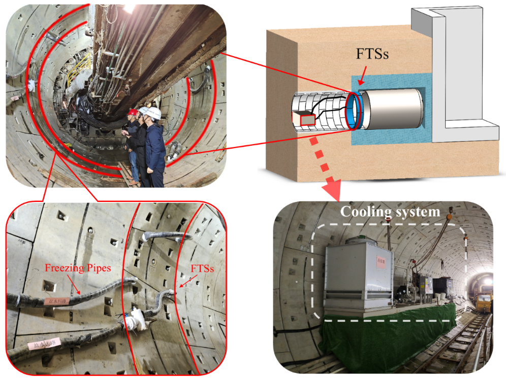 汪亦显团队提出的新型内置冻结隧道管片体系,解决了关键问题:一是将冻结管与预制盾构管片深度集成,打破传统外置冻结管“精准度不足、冻结范围可控性弱”的局限,可对开挖间隙浆体及周围土体实现靶向冻结,高效构建防渗屏障;二是通过原位试验、工程应用与数值模拟三位一体的验证体系,证实该技术在48小时内可将距管片80mm处土体温度降至-14.3℃,在天津地铁10号线工程应用中更是将开挖间隙及周边土体温度稳定控制在-13℃以下,成功实现渗漏零风险目标;三是建立考虑潜热效应的热-力耦合数值模型,揭示了土体冻结过程中热-水-力多场耦合演化规律,阐明了富水地层盾构接收微冻结技术机理。该技术为传统人工冻结技术提供了低碳绿色先进替代方案,不仅大幅提升了盾构接收阶段地层稳定性与止水效果,更实现了冻结过程的精准可控,对盾构隧道越江穿湖跨海工程的渗漏控制与结构安全保障具有里程碑式的低碳示范意义,推动了冻结法隧道工程领域防渗技术的迭代升级。